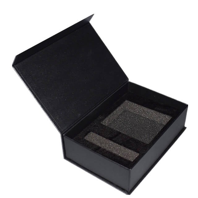 Effortlessly elegant luxury custom matte black magnet flip perfume gift box.